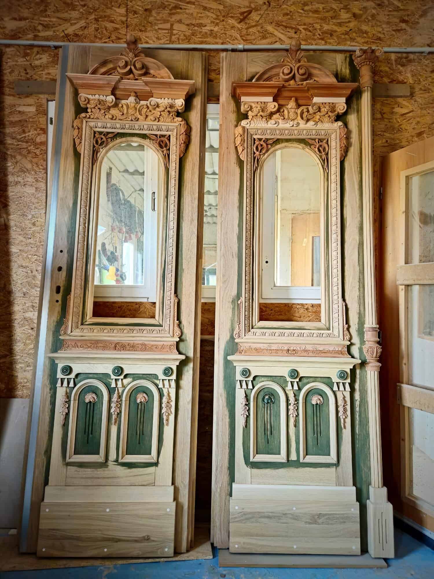 Na místě proběhlo detailní zaměření všech dveřních otvorů a sejmutí ozdobných prvků z původních dveří, které byly následně očištěny, opraveny a umístěny na nové dveře. Tak došlo k jejich úplnému zachování.