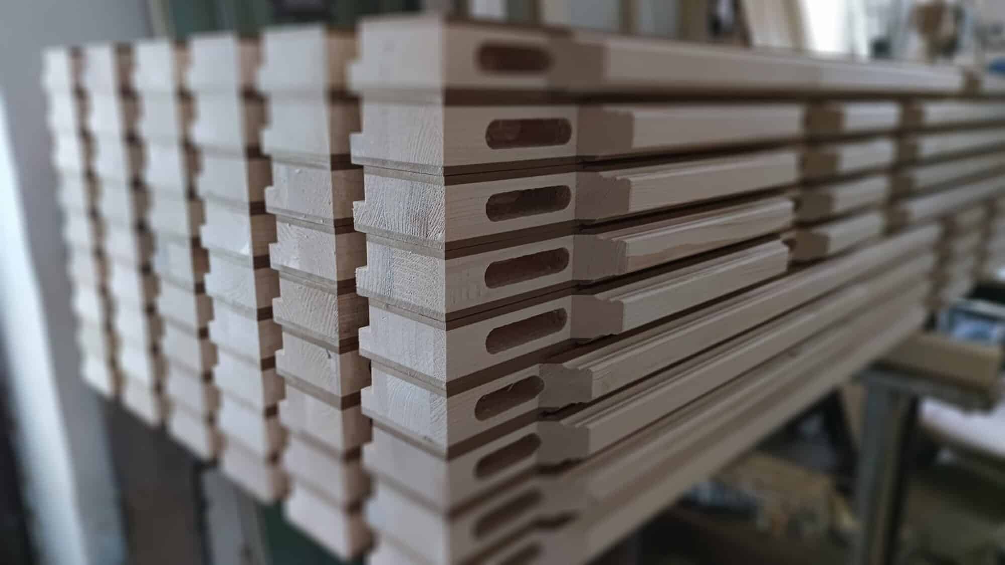 Historická profilace byla sejmuta z původních dveří. Za pomocí zakázkově vyrobených fréz bylo následně možné věrně napodobit jejich původní vzhled.
